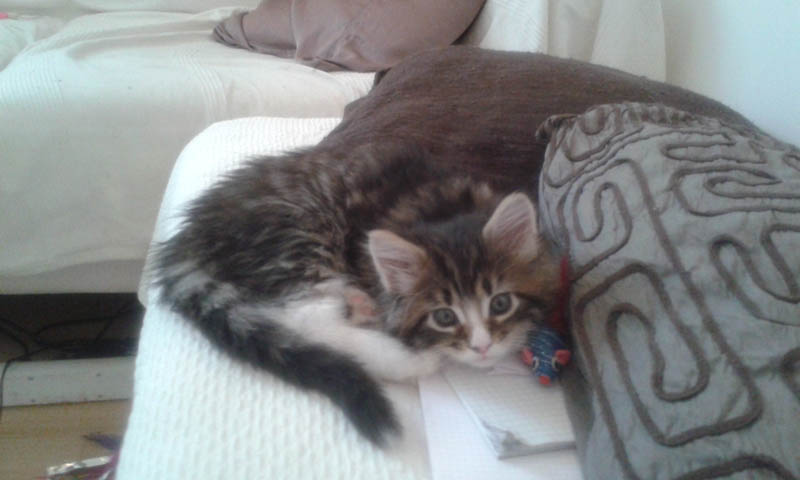 Jac’ est un adorable calinou sur pattes doux gentil et gourmand…Le chat à Papa, il dort près de son papa, au pied du lit…Lui cherche les pieds si on met trop de temps à se lever.